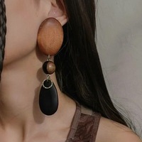 Mode Ovale Houten Lange Oorbellen Retro Etnische Stijl Overdreven Zwarte Houten Traan Bengelen Oorbellen